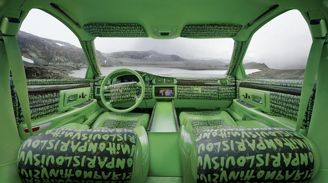 In Detroit, Houston and Los Angeles, he climbed into the backseat and captured the logo-heavy interiors with a large- format camera. Some car owners wore hand-made clothes or accessories to match their autos, so Gispert shot them as well.