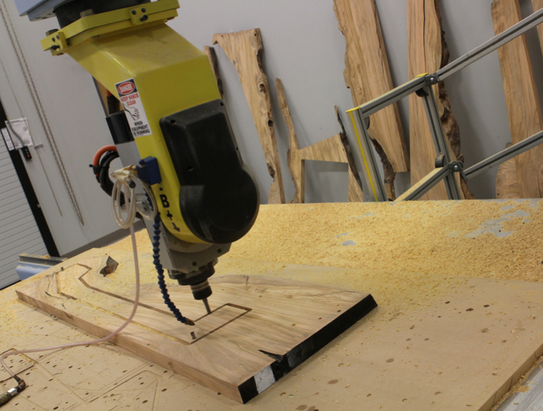 The tree was shipped to a Pennsylvania woodyard where it was then sectioned and kiln-dried. That’s where the designers from General Motors caught up with it and sent the 30-inch wide planks through a planer from the 1940s, then sanded and arranged them on a gantry, and then photographed the planks so that their unique grains could be recreated in a special computer program. From there, the chunks were sent to 3D Mass Design and Engineering, where they were cut to GM specifications and glued into their final configurations. Then, Metalcrafters in Fountain Valley, California took on the task of test-fitting and applying the final stain and finish.