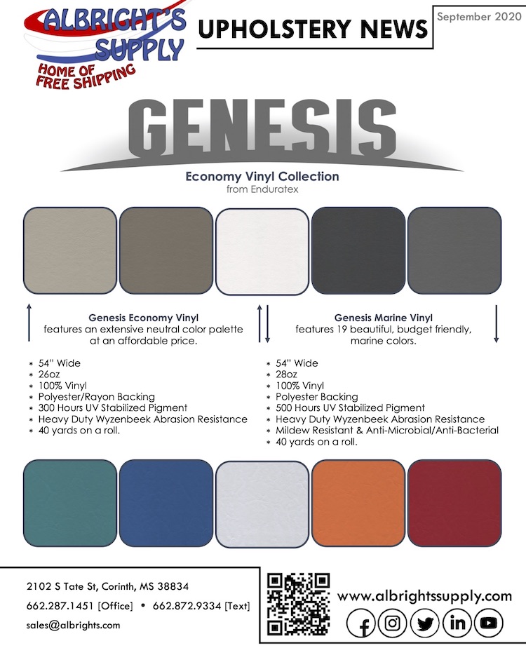 Searching for economy vinyl? Check out Enduratex’s “Genesis” collection available at Albright’s Supply.